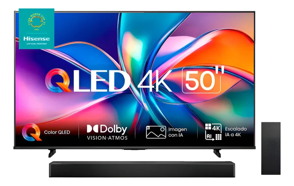 Combo Hisense Pantalla Qled 4k De 50 50qd6qv Vidaa U Compatible Con Alexa ,dolby Vision Atmos, Escalado Ia A 4k, Hdmi, Lan, Wifi. Control De Voz. Bluetooth. (2025) + Barra De Sonido Hisense 2.1 Ch 24