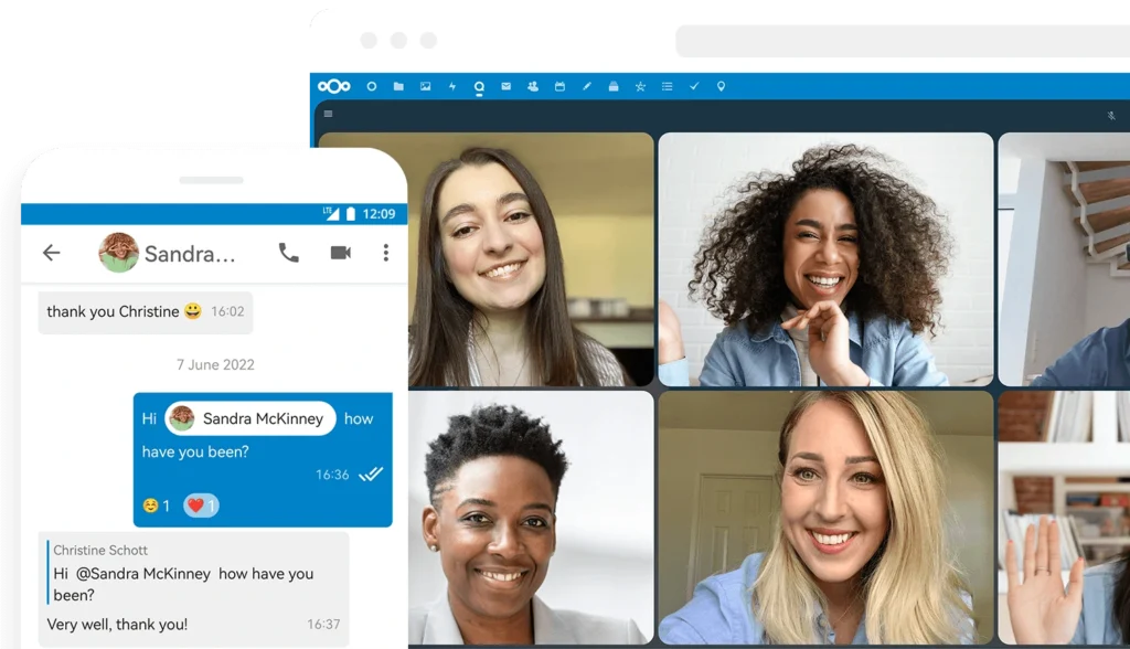 - Nextcloud Talk: Sistema de mensajería y videollamadas integrado